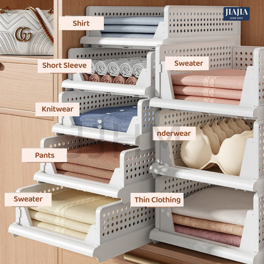 Foldable Wardrobe Organiser Stackable Storage Desk Table Drawer Box Clothes Organizer Plastic Container Basket