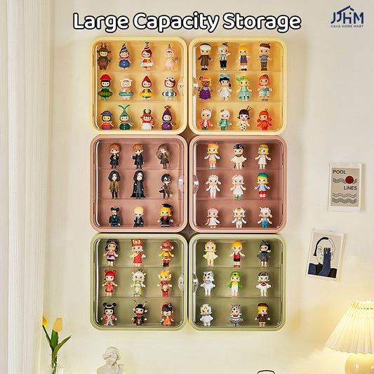 Doll Toy Display Storage Box Wall-Mounted Magnetic Transparent Dustproof Cabinet Organizer Display Case