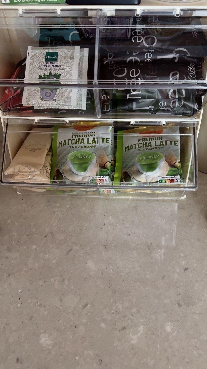 Size was bigger than I expected but suitable for what I got it for. Coffee and tea packets fit well. However, doesn't quite close properly.